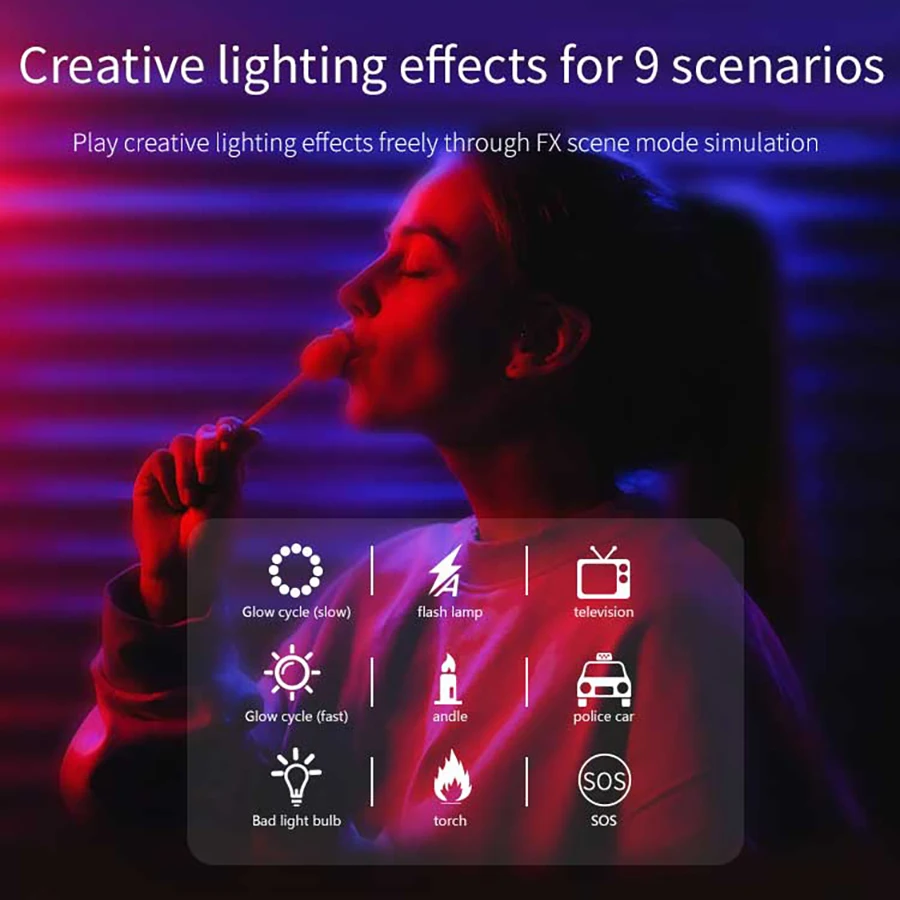 - One-Click Color Selection: Quickly switch colors and lighting modes with a single touch, making adjustments effortless during shoots.