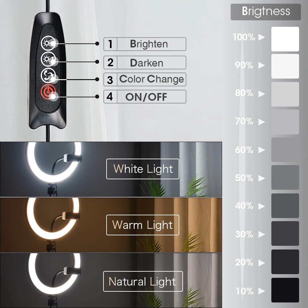 - USB Powered Design: Easily power the ring light through any USB port, making it convenient for indoor use or on-the-go setups.