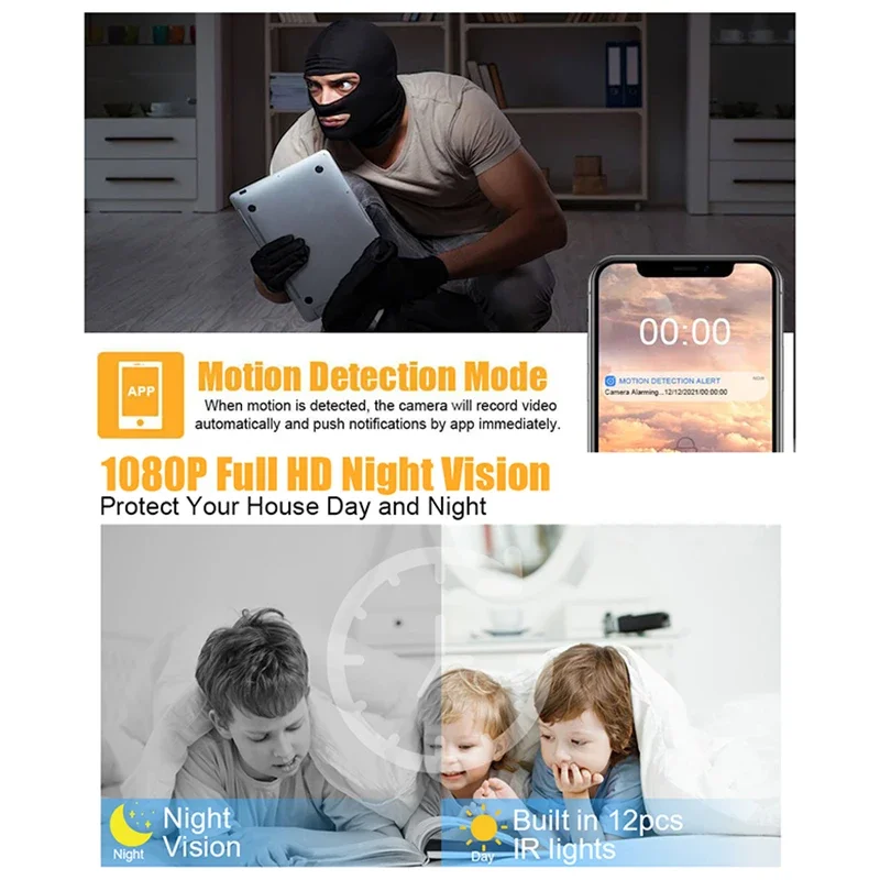- Motion Detection: Equipped with motion detection alerts, the camera notifies you immediately of any movement, enhancing security and peace of mind.